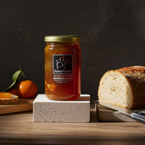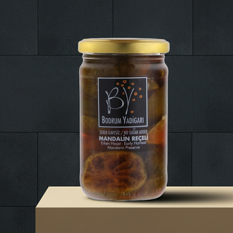Bodrum'un bereketli topraklarında yetişen mandalinlerden, erken hasat döneminde özenle toplanan meyvelerle hazırlanan bu reçel, şeker ilavesi yapılmadan doğal meyve şekeri ile tatlandırılmıştır. Geleneksel yöntemlerle, küçük partiler halinde üretilen bu reçel, mandalinin taze ve aromatik lezzetini sofranıza taşır.