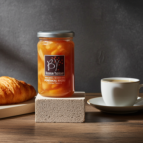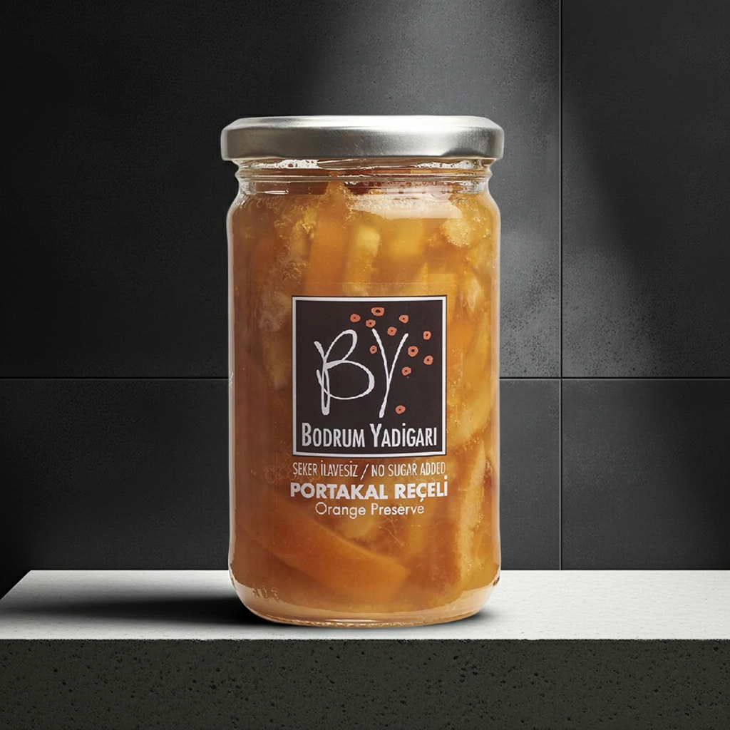 Taze sıkılmış Bodrum portakallarından hazırlanan bu reçel, şeker ilavesi yapılmadan tamamen doğal meyve şekeri ile üretilmiştir. Portakalın tatlı ve aromatik lezzeti, geleneksel tariflerle buluşarak sofranıza taşınır. Küçük partiler halinde, özenle hazırlanmıştır.